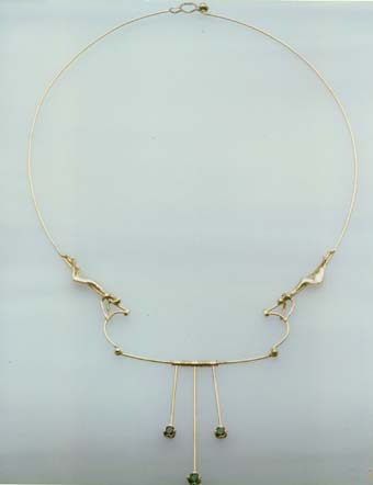 Fabricated and Cast 9 ct Gold, Green Garnets