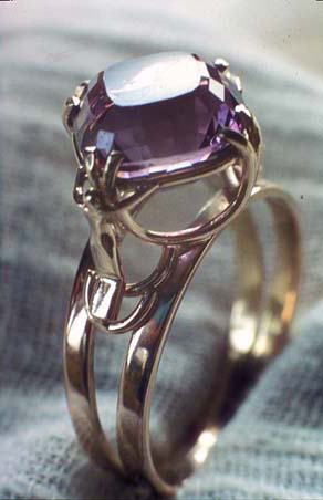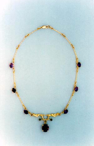 Fabricated and Cast 18 Ct Rose Gold, Amethysts, Green Garnets